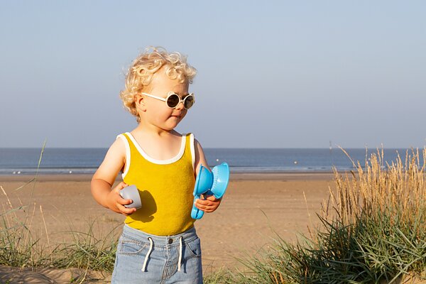 Det är ju viktigt att skydda även barnen från solens UV-strålar, något som man enkelt kan glömma bort en varm sommardag på stranden. Dessutom är barns ögon mer känsliga  för UV-strålning än för oss vuxna.